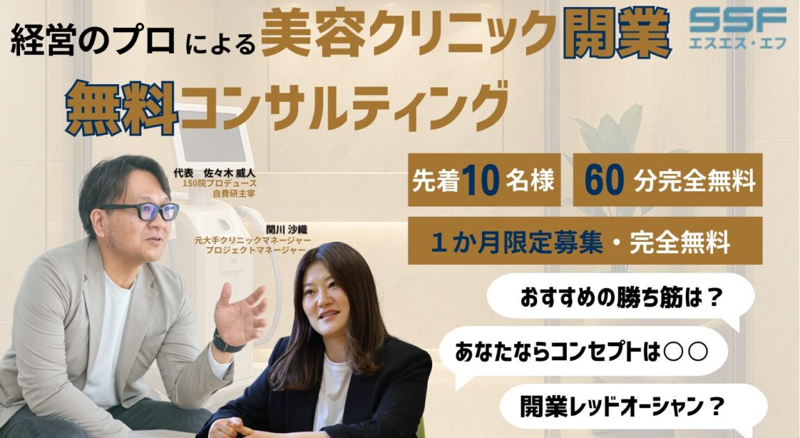 日々多くの方々から相談を受け、実際にクリニックを成功させてきた美容医療のプロフェッショナルが60分無料でお応えします。